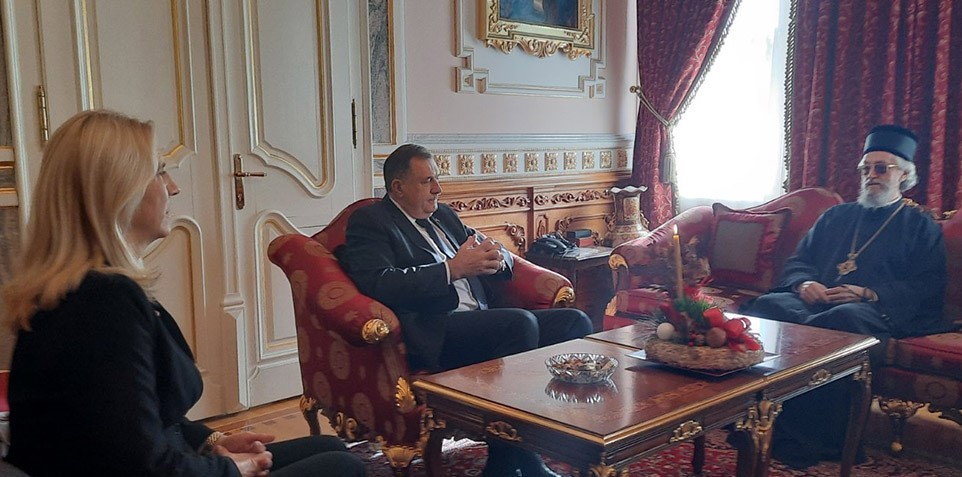 Dodik i Cvijanovićeva poklonili su Njegovom preosveštenstvu episkopu banjalučkom Jefremu panagiju presvete Bogorodice.