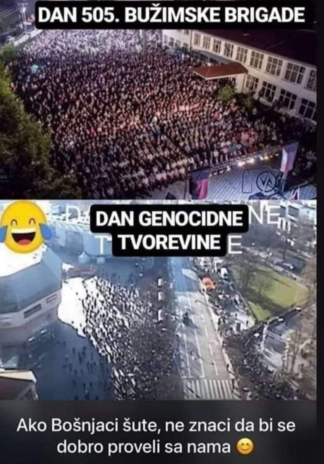 Na pomenutoj stranici je dan ranije objavljena fotografija obilježavanja Dana Republike Srpske sa opisom "Dan genocidne tvorevine", uz komentar "Ako Bošnjaci šute, ne znači da bi se dobro proveli sa nama".