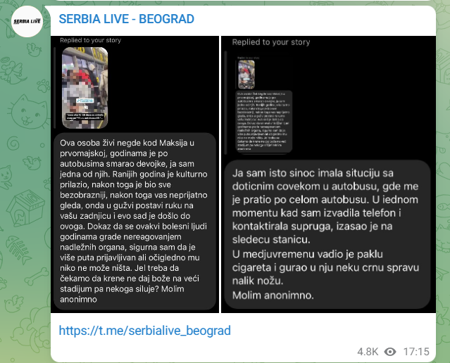 U vozilu javnog prevoza u Beogradu na liniji 45, juče je zabilježena jeziva scena kada je nepoznati muškarac u prisustvu putnika izvadio polni organ i počeo da masturbira.