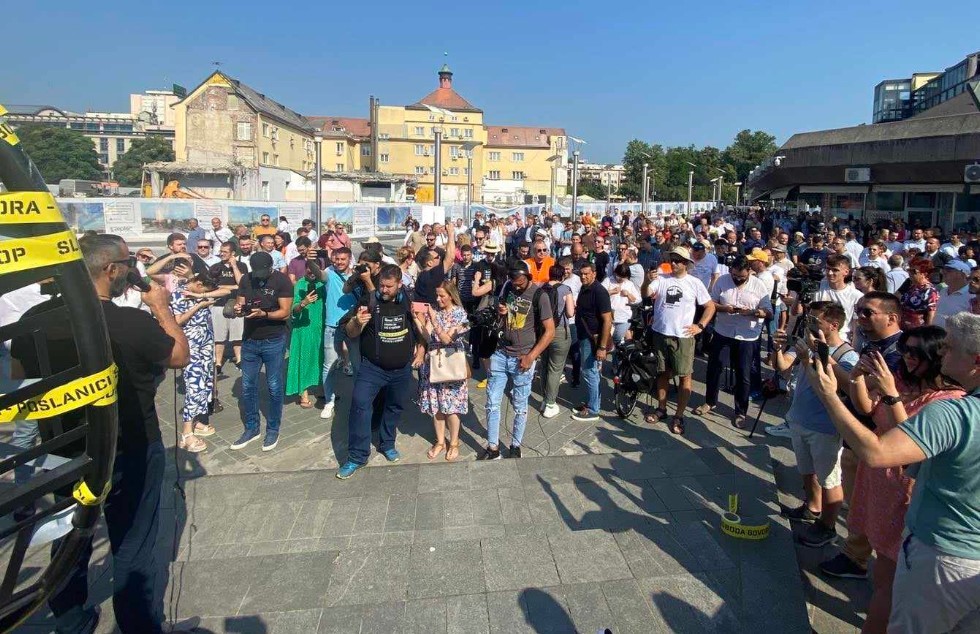 Organizatori protesta pozvali su okupljene da u koloni i bez ikakvih incidenata krenu prema Narodnoj Skupštini Republike Srpske, gdje će nastaviti protest, nakon čega su okupljeni u koloni krenuli Gospodskom ulicom prema skupštini.