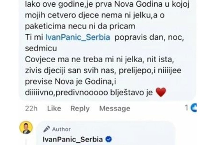 “Skoro sam objavio video o tome kako sam ja ‘skromno’ okitio u kući i sve, tu je totalno neupadljivo. I naišao sam na ovaj komentar, možete da pauzirate da vidite tačno šta piše. I ja se oduševim kako jedna žena koja ima četvoro dece je toliko srećna zbog nekog. Ali ti u poruci vidiš u tom komentaru da je ona srećna zato što ja živim taj san mnogih ljudi ili šta već”, naveo je Ivan.