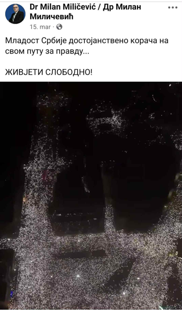 Jedno od ključnih pitanja koje se postavlja jeste da li novac ima veze sa političkom destabilizacijom i podrškom protestima u Srbiji, koje je Miličević javno podržao i objavio 15. marta na svojoj Facebook stranici, otvoreno se svrstavajući protiv predsjednika Republike Srbije Aleksandra Vučića. Ova informacija dobija dodatnu težinu u kontekstu aktuelnih bezbjednosnih izazova u regionu i pokušaja da se naruši politička stabilnost.