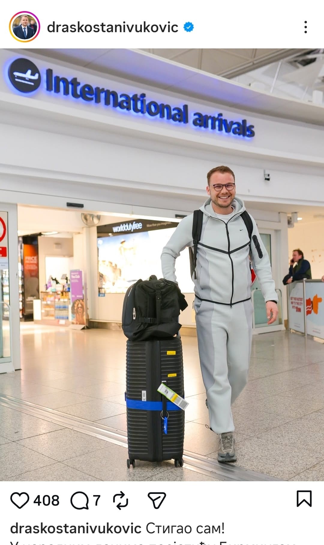 Njegova najnovija objava na društvenim mrežama to najbolje ilustruje. Napisao je „Stigao sam“ uz fotografiju sa aerodroma. Da stavimo stvari u konetkst.