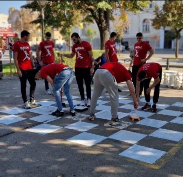 Prizor "Crveno-plavih" rukometaša kako sa farbom i valjcima farbaju "prometni" sportski teren izazvao je pažnju sugrađana.
