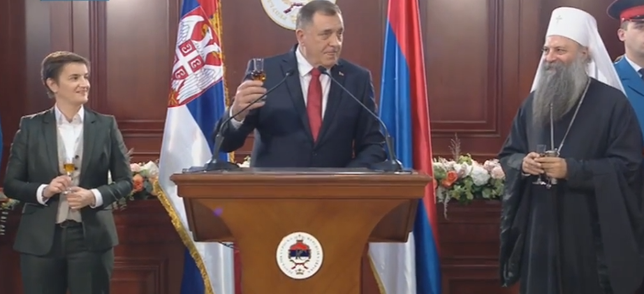 "Radost je večeras za nas sve ovdje sabrane što imamo priliku da čestitamo izbor gospodinu Miloradu Dodiku na veoma odgovornu funkciju na mjesto predsjednika Republike Srpske", rekao je njegova svetost patrijarh Porfirije, na svečanom prijemu povodom stupanja Milorada Dodika na dužnost predsjednika Srpske.