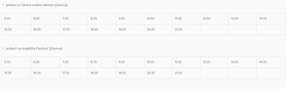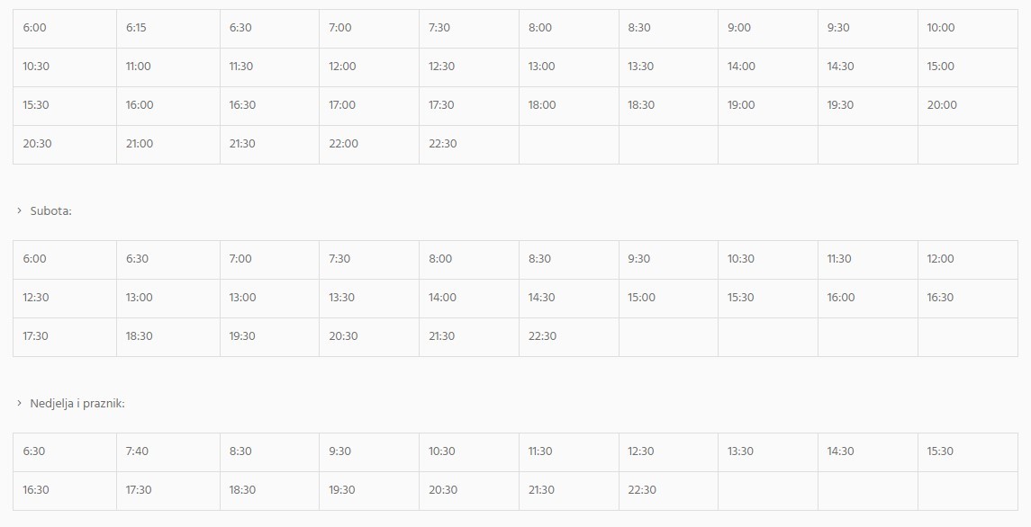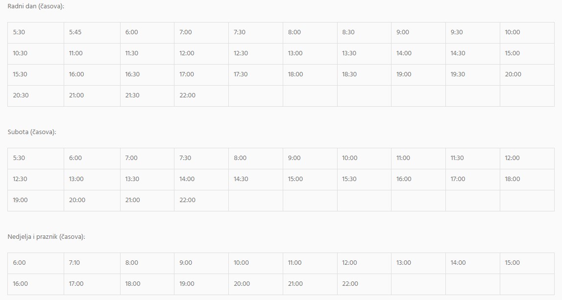 U nastavku pogledajte izmijenjeni red vožnje sa povećanim brojem polazaka, koji je na snazi od 7. novembra.