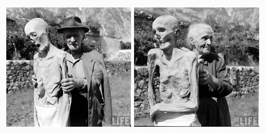 Stanovnici italijanskog Venzonea družili su se sa mumificiranim ostacima svojih mrtvih rođaka. Oni žive sa leševima u svojim domovima, sede ih za svoje trpezarijske stolove i izvode ih na svež vazduh, kao što pokazuje ova fotografija. pic.twitter.com/Tv7B9bmORN